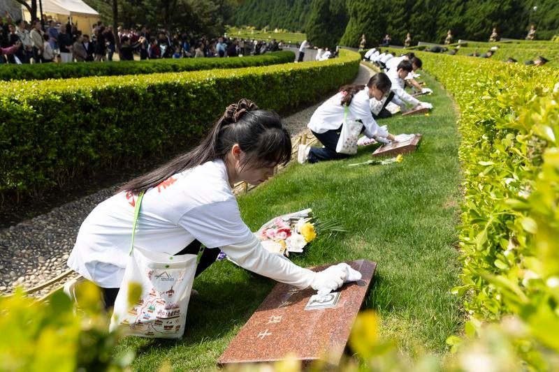 4月5日,學生在上海市龍華烈士陵園烈士墓區擦拭墓碑。圖片來源:新華社 據統計,全國共有6.62萬家殯葬服務機構提供現場祭掃服務,33.09萬名工作人員參與服務保障工作。全天共接待現場祭掃群眾1271.07萬人次,較前一日減少58.64%;疏導車輛284.78萬台次,較前一日減少58.47%。其中,選擇鮮花祭掃等綠色低碳祭掃方式的群眾820.81萬人次,佔現場祭掃總人數的64.58%;775個網絡祭掃平台服務祭掃群眾23.87萬人次。 據統計,全天各殯葬服務機構共安葬骨灰8778具,其中採取海葬、樹葬等生態安葬方式的有338具,佔當日安葬總數的3.85%。各地民政部門和殯葬服務機構嚴格落實各項服務保障措施,紮實開展便民利民服務,積極引導文明綠色低碳祭掃。截至目前,全國殯葬服務機構未發生突發安全事件,群眾祭掃活動安全平穩有序。 隨著清明假期的結束,群眾集中祭掃活動接近尾聲,但後續一段時間仍會有部分群眾進行祭掃。民政部提醒廣大群眾注意安全、綠色出行、文明低碳祭掃。各地民政部門和殯葬服務機構要持續強化安全生產意識,嚴格落實安全管理要求,做好服務保障工作,切實滿足廣大群眾祭掃服務需求,確保祭掃活動綠色文明、平安有序。(完) 【編輯:彭玉婷】