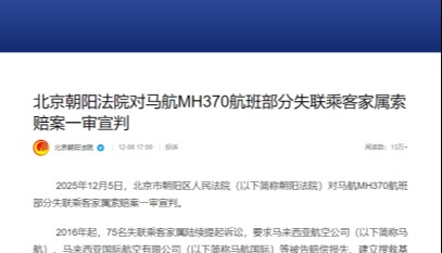 馬來西亞航空客機(資料圖)圖自新華網 2014年3月8日,載有239人(其中中國內地153人,中國台灣1人)的MH370航班從吉隆坡飛往北京的途中失聯,被稱為“航空史上最大的謎團”。近十年來,許多中國失聯乘客家屬仍沒有放棄推動搜尋工作,並通過法律途徑尋求正義。 在馬航MH370事件發生將近十周年的日子,失聯乘客中方家屬代表姜輝日前在接受傳媒訪問時說,部分家屬計劃前往馬來西亞吉隆坡,參與由馬方組織的家屬通氣會。 姜輝表示,馬來西亞交通部長也會出席此次會議,馬方將在會議後的同一場地召開新聞發布會,“是他們主動提出來的,可能有重大事項發布,(因為)往年沒有這個環節”。(完) 【編輯:梅婉潼】