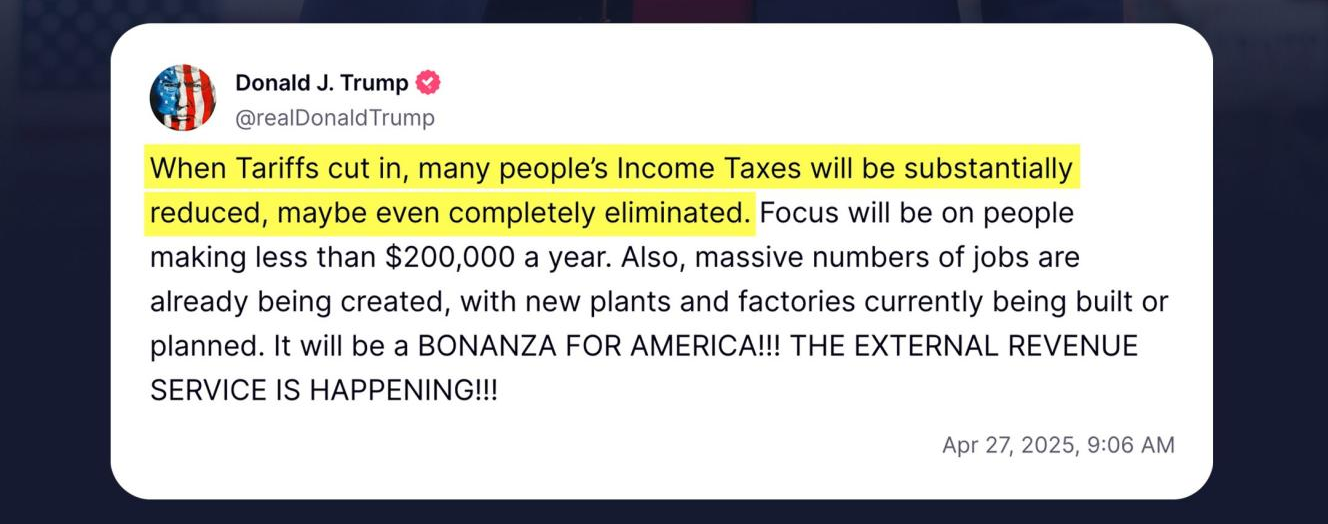 用關稅取代所得稅?特朗普打的算盤能實現嗎?香港新聞網4月28日電(編輯 丘志彬)美國總統特朗普激進的關稅政策令美國民眾愈發焦慮。為挽回民心,他昨日(4月27日)再提“關稅取代所得稅”的計劃。但他的這個算盤真的能實現嗎?