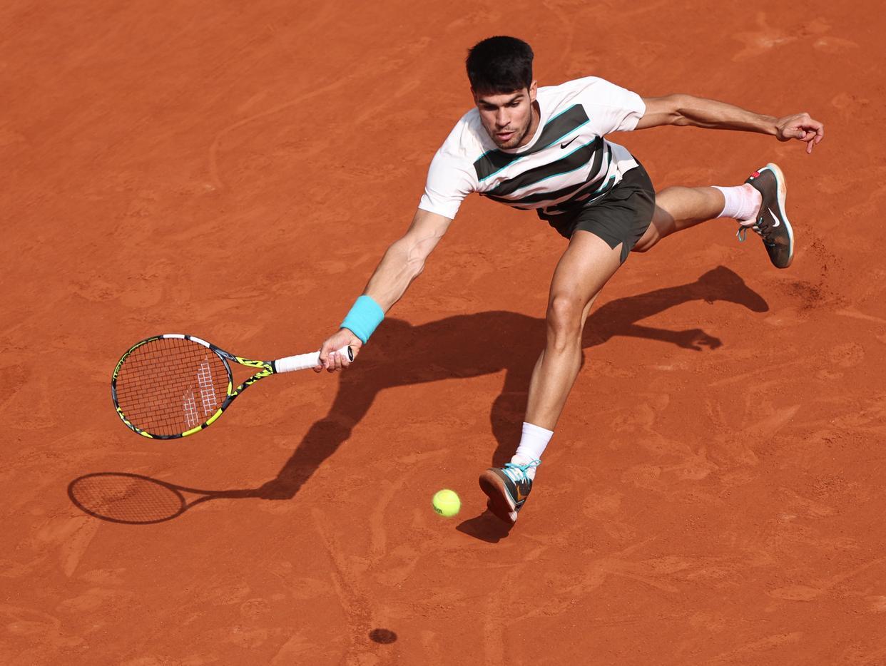 當天阿爾卡拉斯在比賽中回球(新華社圖片) 這是意大利名將辛納、西班牙名將阿爾卡拉斯兩位備受矚目的“00後”男單球員首次在大滿貫決賽相遇。此前,兩人的大滿貫決賽勝率均為百分之百。 比賽前兩盤,辛納以6比4、7比6(4)連下兩城。此後,阿爾卡拉斯奮起直追,以6比4扳回一盤。第四盤比賽上演最為經典的一幕,阿爾卡拉斯盤末連續挽救賽點,並破掉對手發球勝賽局,以7比6(3)將大比分追平。 決勝盤,兩人在戰成6比6的情況下,比賽進入“搶十”決勝。阿爾卡拉斯越戰越勇,以10比2拿下比賽,成功衛冕法網男單冠軍,斬獲職業生涯第五個大滿貫。 這場比賽耗時5小時29分鐘,創造了法網史上持續時間最長的男單決賽紀錄,也是史上首場“00後”之間的大滿貫男單決賽。(完) 【編輯:吳一帆】