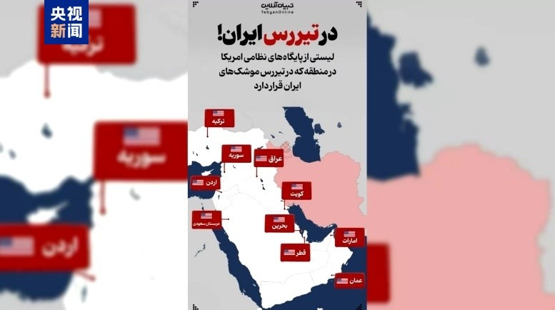 伊媒發布地圖:導彈射程內有10座美軍基地香港新聞網6月19日電 以色列與伊朗衝突持續,引發中東局勢緊張,美國近日也動作頻頻,軍事介入的跡象愈發明顯。當地時間6月19日,伊朗塔斯尼姆通訊社在社媒發布了中東地區在伊朗導彈射程內的10座美軍基地地圖,以回應美國或在未來幾天空襲伊朗的威脅。
