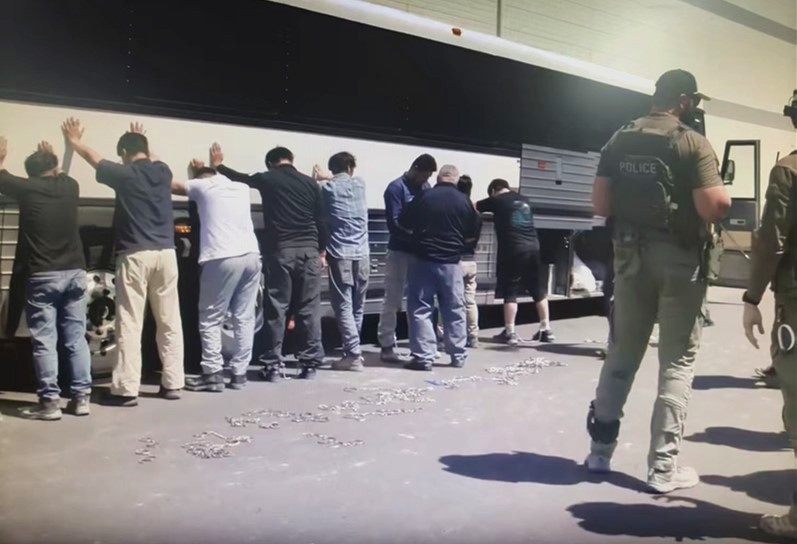 美國移民與海關執法局(ICE)執法現場。ICE網站視頻截圖 據美媒報道,9月4日,美國移民與海關執法局(ICE)在美國佐治亞州一場針對現代汽車與LG新能源合作電池工廠的突擊執法行動中,以涉嫌“非法居留”為由逮捕475人,其中約300人為韓國籍。 現場視頻顯示,執法人員動用直升機、裝甲車等裝備,部分韓國工人被銬上手銬、腳鐐和腰銬,隨後多數被拘者被送往佐治亞州福克斯頓的拘留中心。 事件發生後,韓國社會一片嘩然,從政府到民眾都表達了強烈不滿。