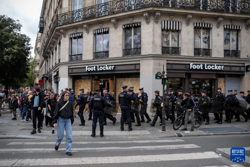 9月10日,警察在法國巴黎夏特萊廣場附近的游行示威現場警戒。新華社圖片 據新華社報道,當天,法國交通、教育、電力、醫藥等行業勞動者在不同程度上響應工會號召舉行罷工,呼籲制訂“更加公正”的財政方案。巴黎、里昂、雷恩等城市的街頭示威活動還伴隨暴力及破壞事件。據法國內政部通報,全法有超過300人被捕。