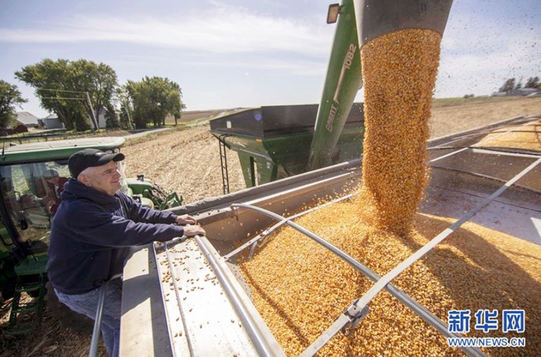 美國艾奧瓦州大西洋鎮,比爾·佩雷特看著收穫的玉米裝上卡車。新華社資料圖