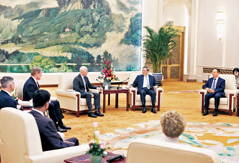李強在北京會見美國國會眾議員代表團史密斯一行。新華社圖片 據新華社報道,21日下午,中國國務院總理李強在北京人民大會堂會見來華訪問的美國國會眾議員代表團史密斯一行。 李強表示,中美都是世界上有重要影響力的大國,中美關係保持穩定、健康、可持續發展,符合兩國共同利益和國際社會期待。今年以來,習近平主席同特朗普總統數次通話,一致認為中美應當加強對話與合作,為下階段中美關係發展作出戰略指引。中方願同美方相互尊重、和平共處、合作共贏。希望美方與中方相向而行,共同推動雙邊關係沿著正確軌道向前發展,既造福兩國,也惠及世界。 李強指出,中美應當做攜手發展的夥伴,真誠相待、相互賦能、彼此成就。中方願同美方本著平等、尊重、互惠的精神,通過溝通解決各自關切。希望美國國會正確看待中國和中美關係,積極促進兩國交流合作,為兩國友好和共同發展發揮建設性作用。 英國路透社注意到,這次跨黨派訪問是在中美元首19日通話之後進行的,雙方都尋求擺脫因貿易摩擦、美國對華半導體芯片限制、TikTok、南海和台灣等問題而加劇的緊張關係。 新加坡《聯合早報》稱,這是自2019年以來首次有美國眾議員代表團訪華。此舉表明中美正加緊接觸,以努力穩定雙邊關係。 此次訪華的美國眾議院跨黨派代表團由民主黨眾議員亞當·史密斯率領。史密斯曾任眾議院軍事委員會主席,目前是有關委員會的民主黨領袖。 另據美國彭博社報道,跨黨派代表團21日在與中方會面前,先由美國駐華大使龐德偉接待。 龐德偉在社交平台X上用中文發文稱:“這是自2019年來首度訪華的眾議院代表團。這個跨黨派團隊在管理美中關係方面扮演著至關重要的角色。”(完) 【編輯:李雪萍】