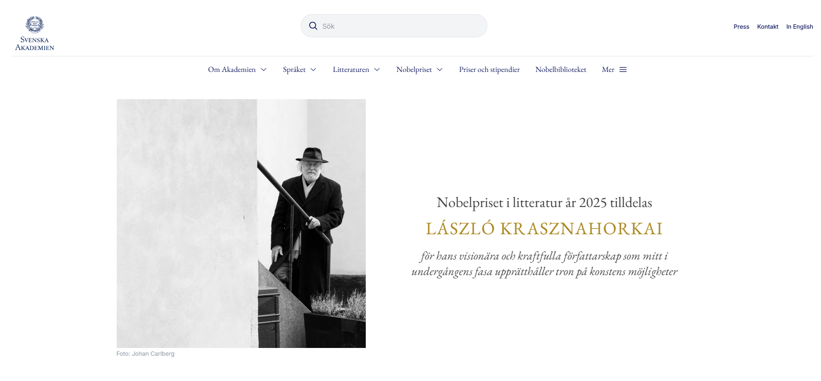 匈牙利作家拉斯洛獲2025年諾貝爾文學獎 圖片來源:瑞典學院官網截圖 現年71歲的拉斯洛以結構複雜、氣勢磅礴的長句著稱,其句子常綿延數頁,形成如音樂般律動的“史詩性”敘述,被評價為“火山岩般的敘述,暗河湧動般的風格”。他的代表作《撒旦探戈》與《反抗的憂鬱》均被導演貝拉·塔爾改編為電影,其中《撒旦探戈》長達七小時,被譽為影史奇觀,並在去年浙江國際青年電影周展映時引發熱議。 有文藝評論家指出,拉斯洛的小說從《撒旦探戈》到《反抗的憂鬱》,展現了一條“從陷阱走向毀滅”的精神路徑,其天馬行空的想象力與東歐特有的歷史沉重感深度融合,極具吸引力。閱讀他的作品,猶如“在宣講絕望的教堂裡待整整九個半小時”,充滿挑戰卻令人震撼。 拉斯洛1954年生於匈牙利,早年學習法律後轉攻文學,曾擔任圖書管理員、記者等職,深入低層的生活經歷成為其創作的重要源泉。1985年出版的《撒旦探戈》奠定其文壇地位,此後陸續獲得匈牙利科蘇特文學獎(2004)與國際布克獎(2015)。 值得一提的是,拉斯洛對中國文化極為推崇。他曾於1991年訪華,並出版遊記《烏蘭巴托的囚徒》;還沿中國唐朝詩人李白足跡遊歷中國十城,撰寫《北山、南湖、西路、東河》等作品。一位匈牙利漢學家為其取中文名“好丘”,寓意“美麗山丘”並致敬孔子,他本人亦欣然接受。拉斯洛長期期盼作品推出中文版,視之為與中華文明的深度對話。(完) 【編輯:林曉惠】