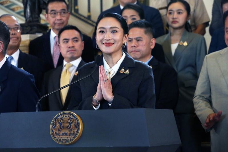 泰國前總理佩通坦(中)圖片來源:新華社 39歲的佩通坦曾是泰國最年輕的總理。今年6月,佩通坦同柬埔寨參議院主席洪森關於泰柬邊境局勢的一段通話錄音流出後,在泰國引發爭議。佩通坦在通話中稱洪森為“叔叔”,請求洪森協助她解決邊境問題,還批評泰國軍方領袖。 7月1日,泰國憲法法院宣布,受理有關調查佩通坦是否存在違憲行為的請願書,並當即暫停佩通坦行使總理職權。8月29日,泰國憲法法院以“違反道德規範”為由,裁定執政僅一年的總理佩通坦被解職。 盡管為泰黨黨章並未明確規定相關辭任機制,但根據選舉法規,黨首必須親自簽署眾議員候選人提名文件。若未來有相關人士向法院或獨立機構提出申訴,可能導致候選人資格被取消。 分析指,為避免此類法律與聲譽風險,佩通坦選擇主動辭任,以防止未來影響為泰黨的整體運作和選舉布局。(完) 【編輯:林曉惠】