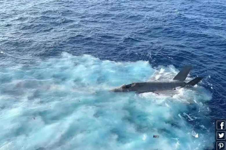 社媒臉書資料圖 接著是2022年1月,“卡爾· 文森”號航母在中國南海進行艦載機起降訓練時,一架F-35C在甲板上降落時墜毀并掉入大海,飛行員彈射逃生(見下圖)。