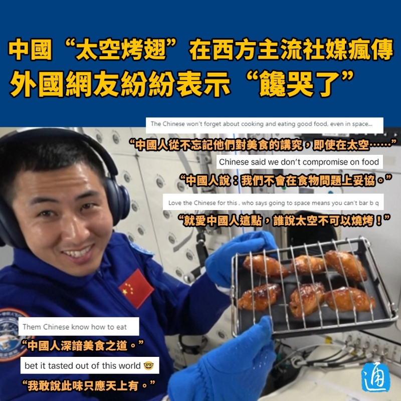 中國“太空烤雞翅”在西方主流社媒瘋傳,外國網友紛紛表示“饞哭了”分享到: