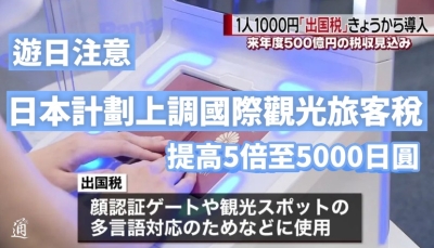 香港新聞網11月13日電 日本政府據報正研究把國際觀光旅客稅,即是出境稅,從現時的1000日圓,調高至大約3000日圓、折合港幣約150元,計劃把增加的稅收用於緩解過度旅遊問題。