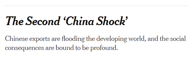 《紐約時報》報道截圖 美國《紐約時報》8日則以“第二次中國衝擊”為題製造恐慌,抹黑中國對發展中國家的出口。報道回溯二十年前歐美企業將生產外包中國的歷史,將其定義為導致“歐美製造業崩潰”的“第一次衝擊”;如今又炒作中國因出口歐美受阻轉向發展中國家,將引發“當地企業倒閉、工人失業”的“第二次衝擊”。 這種將自身產業政策失誤歸咎於中國的邏輯實在荒謬。正如《環球時報》此前評論所言:所謂“二次衝擊”不過是“中國威脅論”的新變種。真正的衝擊從來不是“中國製造”,而是歐美對全球化和自由貿易原則的背離,是對中國發展的扭曲認知。 美媒的反復炒作,本質是對全球經濟共生現實的“選擇性失明”。這種思維在多年前就製造過“中國人吃肉破壞雨林”的荒誕新聞,《時代周刊》甚至叫囂“中國人不吃肉地球才得救”。 近幾個月來,受貿易戰影響,中國拋棄美國轉向購買巴西大豆,美媒又炒作了一番“破壞雨林”的論調,卻被中國網友反諷“為保護美國生態才不買美國大豆”。有觀點指出,零和叙事不過是西方部分勢力難以接受自身優勢下滑的情緒宣洩。 在經濟全球化深度融合的今天,貿易順差從來不是“利益掠奪”的證明,而是各國比較優勢的自然結果。中國萬億順差的背後,是全球產業鏈的高效協同,是中國堅持開放的必然結果,更是中國企業持續創新、提升全球競爭力的生動體現。 (完) 【編輯:淩玉輝】