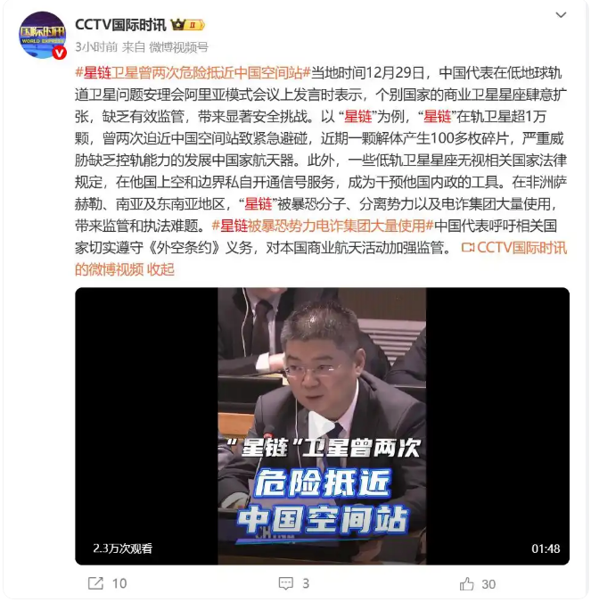 (報道截圖) 尼科爾斯當日在社交媒體平台X發表聲明說,計劃在2026年將所有運行高度約550公里的衛星降至約480公里,降軌衛星數量約4400顆。 尼科爾斯稱,降低軌道也讓“星鏈”衛星系統遠離日益擁擠的500至600公里軌道帶,減少因缺乏協調和潛在碎片等帶來的風險。 業界有觀點認為,“星鏈”大量衛星在太空帶來安全挑戰。據此前消息,2025年12月,一顆“星鏈”衛星出現故障,軌道高度迅速下降4000米並產生碎片,說明有可能發生了爆炸。此類事故嚴重威脅其他航天器安全。 尼科爾斯說,目前還有兩顆“完全失效”的“星鏈”衛星留在軌道上。(完) 【編輯:李彥洲】