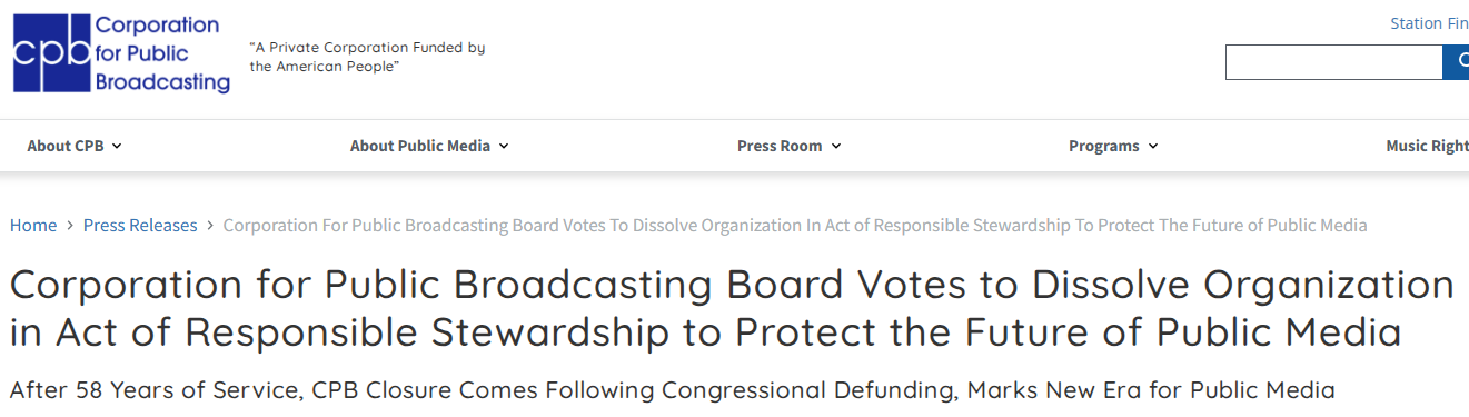 這是美國公共廣播公司網站1月5日刊出的新聞稿截圖,標題上寫著“公共廣播公司董事會投票決定解散該組織,此舉旨在以負責任的方式保護公共媒體的未來” 公共廣播公司發表聲明說,該機構已無法按照《公共廣播法》的初衷繼續運營。董事會認定,繼續作為一家無資金支持的機構運營不符合公眾利益,且可能面臨政治濫用或法律風險。 特朗普去年5月簽署行政令,終止對美國公共廣播公司、美國全國公共廣播電台等公共媒體的聯邦資助,稱這些媒體的報道“不公平、不準確、帶有偏見”。公共廣播公司隨後起訴特朗普政府,並逐步縮減規模。 據公共廣播公司網站介紹,該機構成立於1967年,是美國國會授權成立的私營非營利性媒體機構。 此外,去年11月28日,美國白宮網站新設頁面,推出“媒體偏見追蹤”功能,列出了媒體名稱、記者姓名及其“罪名”,以及“真相”和“資訊來源”等內容,並特別設計了“違規媒體恥辱榜”。根據這一最新措施,一些報導被貼上了“左翼瘋話”等標籤,被針對的媒體包括華盛頓郵報、華爾街日報等傳統大型媒體機構。 美國總統特朗普長期以來對主流媒體持反對態度,近期對多家媒體機構提起訴訟或賠償,並對多位記者進行人身攻擊或侮辱,招致業界不滿。(完) 【編輯:淩玉輝】