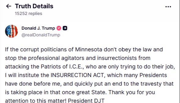 總統力挺與裝備升級 造就美移民局坐大?香港中通社1月16日電(香港中通社記者 關秀英)近日,美國移民及海關執法局(ICE)因執法行動引發的示威持續升級。1月15日,美國總統特朗普以明尼蘇達州示威為由,在社交媒體公開威脅動用《叛亂法》並派遣美軍介入當地執法,稱“若明尼蘇達州腐敗政客不遵守法律、不制止那些攻擊僅履行職務的ICE‘愛國者’的職業煽動者與叛亂分子,我將啟動《叛亂法》”。導火線始於本月7日,ICE人員在明尼蘇達州明尼阿波利斯市執法期間開槍擊斃37歲美國女性公民古德,此槍並非針對非法移民,而是射向美國公民,事件立即引發民眾強烈不滿。過去幾天,抗議活動持續升級。14日,聯邦執法人員再度在明尼蘇達州開槍擊中一名男子腿部,進一步加劇緊張局勢,引發全美多個城市的示威浪潮。