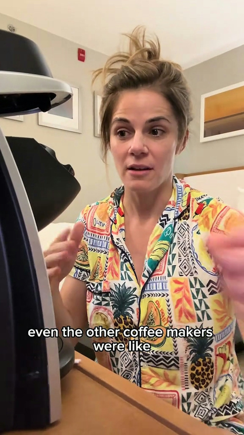 伍德考斯在片中教授如何用旅店咖啡機洗內衣褲。圖源:TikTok視頻截圖。 這段被稱為“史上最酷小技巧”的影片,實際於2025年11月9日在TikTok首發,最近(2月下旬)突然在網路病毒式傳播。伍德考斯在片中表示,點子來自一位空服員朋友,並示範將內衣放入咖啡機沖煮。影片迅速被轉發數萬次,網友一面倒批評“極不衛生”“噁心”,更擔心之後住客不知情下使用同一咖啡機沖泡飲品。 部分網路傳言指伍德考斯因此被索賠100萬美元,但多間媒體fact check顯示,至今並無任何酒店或當事人正式提出訴訟,相關說法未經證實。 面對持續擴大的輿論壓力,伍德考斯於2月23日至25日在Instagram先後發出回應影片及心靈語錄。她在影片中澄清,自己從未真正用咖啡機洗過內衣,當時發文主要是想提醒大家“酒店咖啡機其實很髒,不要用”,並強調自己早於2023年已公開表示“永遠不會喝酒店房間的咖啡”。25日她再發出一段心靈小語:“你不必知道接下來會發生什麼。只要知道上帝自有安排,而此刻的你正處在祂要你在的位置,內心便能得到平安。”似乎間接回應當前風波,但仍有不少網友在留言區繼續嘲諷該影片。 事件持續發酵中,多間國際媒體包括People、E! News、New York Post及The Sun均已跟進報道,網友更戲稱“以後再也不敢碰酒店咖啡機”。(完) 【編輯:關秀英】