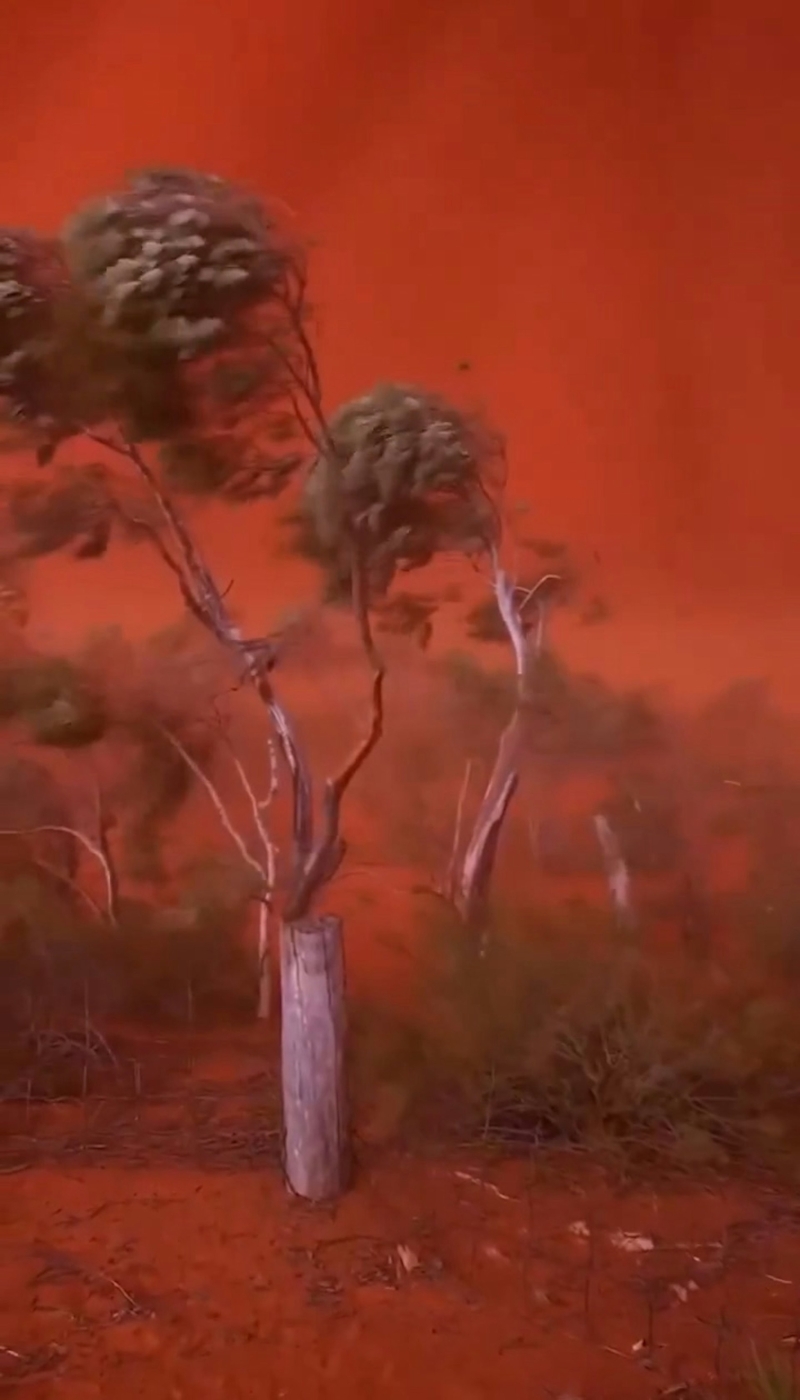 澳大利亞西海岸近日出現“血紅天空”。圖源:YouTube@Rachel985456360 這段影片最早由位於西澳鯊魚灣(Shark Bay)的鯊魚灣露營車公園(Shark Bay Caravan Park)於3月27日在官網分享。從畫面可見,當地天空顏色異常鮮紅,現場拍攝者形容戶外環境“極其詭異”(incredibly eerie),空氣中充滿細微灰塵。受到光線與懸浮微粒影響,地面上的建築、車輛等物體在鏡頭中幾乎失去原有色彩,整體畫面只剩下黑、白、灰與紅色調,讓場景看起來格外不尋常。