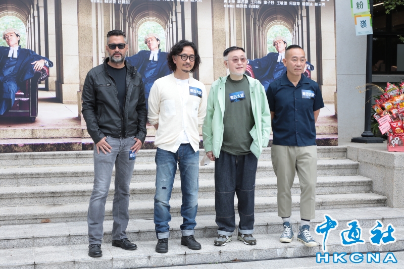 •   5月23日,香港藝人王敏德(左起)、謝君豪、谷德昭、林保怡出席《毒舌大狀》開鏡儀式。(香港中通社記者張海德攝) 香港中通社圖片