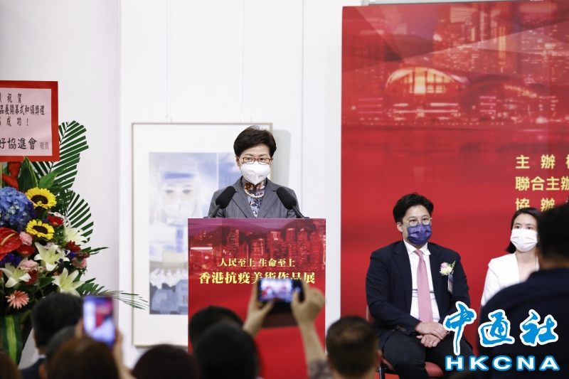 香港特區行政長官林鄭月娥出席抗疫美術作品展頒獎禮分享到: