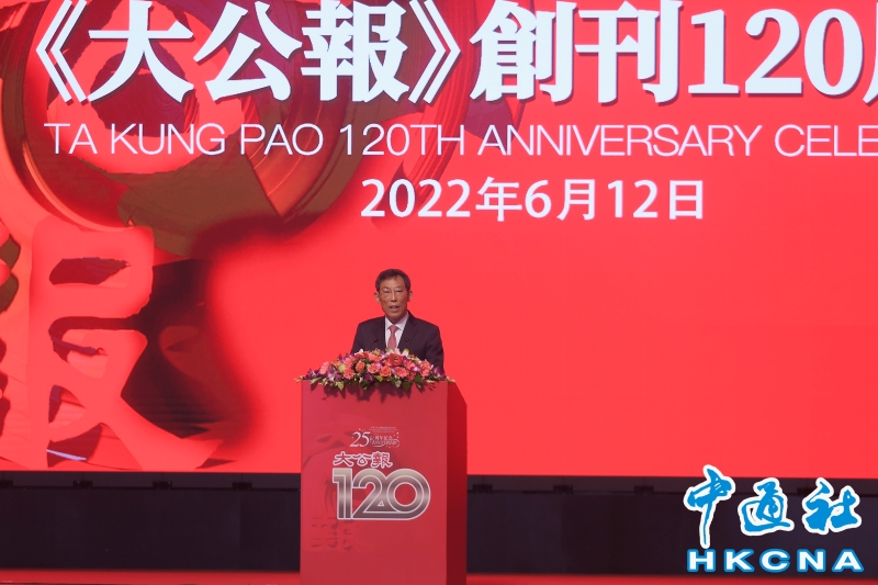 •   今年是香港回歸祖國25周年,亦是《大公報》創刊120周年。 6月12日下午,《大公報》創刊120周年慶祝儀式在香港會議展覽中心舉行。圖為香港大公文匯傳媒集團董事長姜在忠致辭。(香港中通社記者 許其皓攝) 香港中通社圖片
