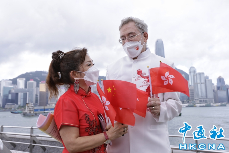 香港市民尖沙咀碼頭快閃賀73周年國慶分享到: