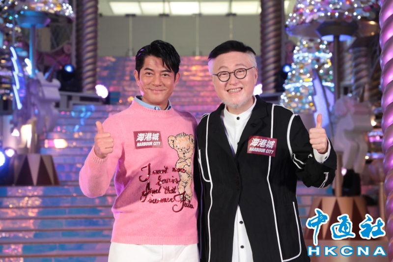 •   11月16日,香港“海港城”商場聖誕亮燈儀式舉行。圖為郭富城(左)、谷德昭應邀出席主持亮燈儀式。(香港中通社記者張海德攝) 香港中通社圖片