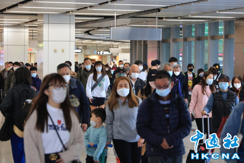 •   12月29日,香港衞生署衞生防護中心公佈,香港新增24895宗新冠確診個案,其中23589宗為本地個案,1306宗為輸入個案。圖為香港市民戴口罩出行。(香港中通社記者 許其皓攝) 香港中通社圖片
