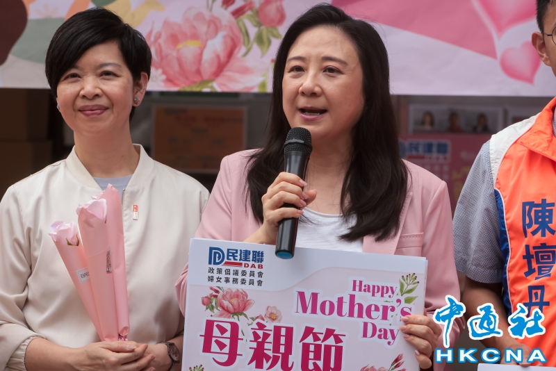 •   5月12日是母親節,香港特區政府房屋局局長何永賢與民建聯立法會議員李慧琼、葛珮帆、顏汶羽等人,參與“溫馨五月 感恩母親”活動,到訪沙田禾輋邨及酒樓,向婦女派環保番梘花和心意卡,向全港母親聊表心意,祝願天下媽媽“母親節快樂”。當日民建聯舉行發布會公布一系列爭取婦女政策。圖為民建聯副主席葛珮帆致辭。(香港中通社記者  謝光磊 攝) 香港中通社圖片