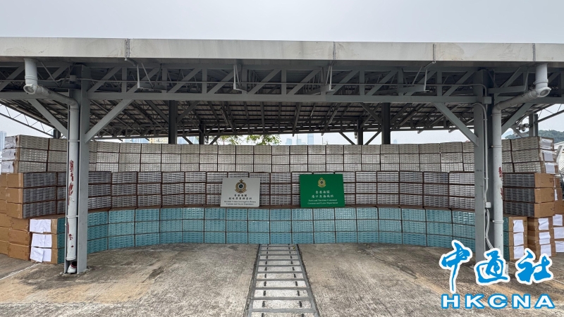•   1月1日,香港海關公佈去年12月31日在西環及數碼港對開海面破獲兩宗大型走私香煙案件,於兩艘漁船上檢獲共約二千五百萬支懷疑私煙,估計市值約一億一千四百萬元,應課稅值約八千四百萬元。圖為海關人員檢獲的部分懷疑私煙。 香港中通社圖片