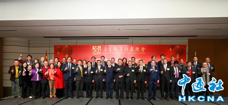 •   2月8日,香港政務司副司長卓永興出席香港潮屬社團總會乙巳年新春團拜。圖為(前排左九起)中聯辦九龍工作部部長祝小東、香港潮屬社團總會永遠名譽主席許學之、保安局局長鄧炳強、政務司副司長卓永興、香港潮屬社團總會會董會主席陳振彬博士、政制及內地事務局局長曾國衞、中聯辦社團聯絡部部長蘇玉軍和香港潮屬社團總會永遠名譽主席陳幼南博士與一眾嘉賓舉杯祝酒,送上新春祝福。 香港中通社圖片