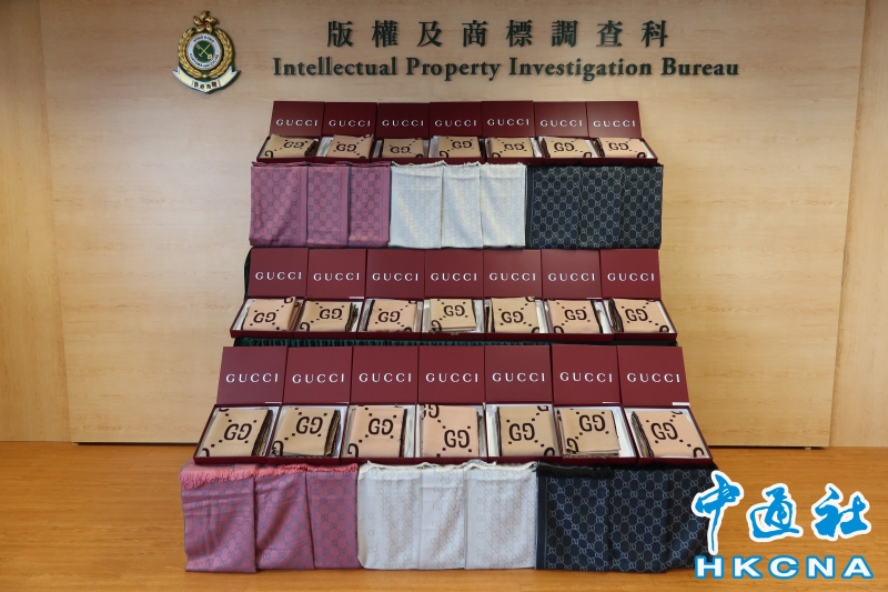 •   香港海關於1月28日在元朗執行打擊冒牌物品行動,檢獲約一萬一千多件懷疑冒牌貨物,包括頸巾及衣服,估計市值約五百八十萬元。圖為檢獲的懷疑冒牌貨物。 香港中通社圖片