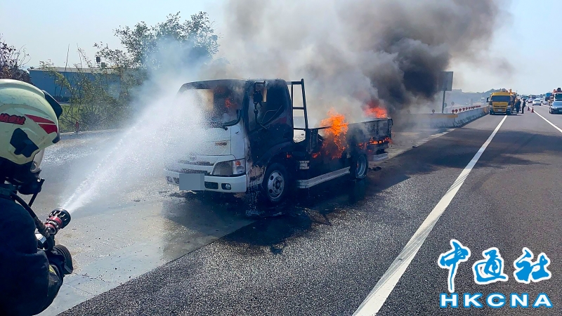 •   2月22日上午台灣第一號高速公路北上204.8公里彰化路段,一輛小貨車因不明原因突然起火,黑色濃煙更直竄天際,駕駛急忙將車輛停在外路肩等待救援,並下車逃生。警消獲報趕往滅火。詳細事發經過及原因,仍待警方進一步調查釐清。 香港中通社圖片