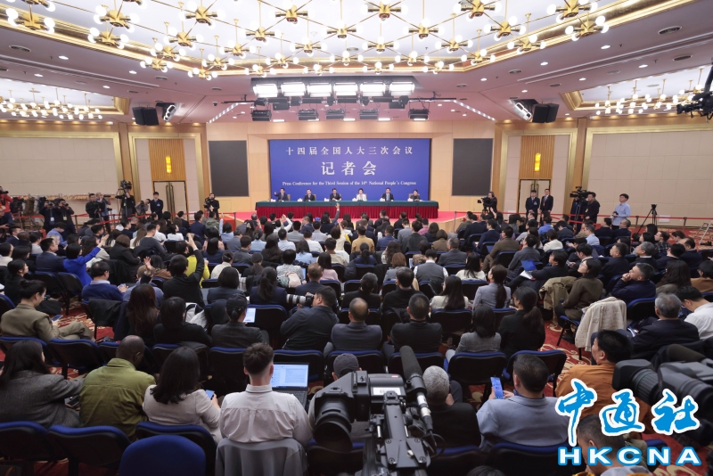 3月9日,十四屆全國人大三次會議在北京梅地亞中心舉行記者會,民政部部長陸治原、人力資源和社會保障部部長王曉萍、住房和城鄉建設部部長倪虹、國家衛生健康委員會主任雷海潮就民政、就業和社會保障、住房、衛生健康等相關問題回答中外記者提問。(香港中通社記者 謝光磊 攝) 香港中通社圖片
