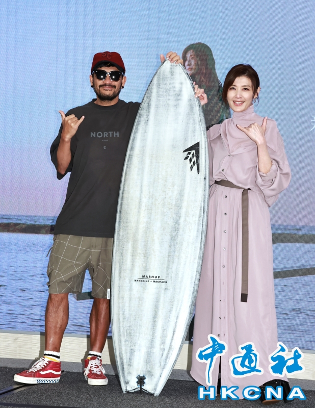 •   台灣歌手蘇慧倫睽違5年,終於帶著全新專輯《輕重Aftersun》與歌迷見面,3月10日記者會上,好友張震嶽(左)帶著衝浪板上台,希望蘇慧倫繼續“衝”出佳績。 香港中通社圖片