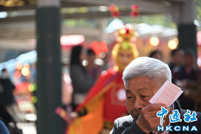 香港沙田車公廟是香港新界沙田區大圍一座廟宇,其中在現有廟宇建築物後舊廟為一座香港二級歷史建築,主祀車公。車公,是宋朝末年的一名忠臣,蒙古滅宋,宋帝昺逃到廣東,車公一直護駕到香港,途中病逝。故受到當地鄉民的紀念與奉祀。車公誕原為農歷年初二,蓋因年初三是“赤口”,不宜拜年,男女善信於是改於年初三拜車公了,每年農歷年初三,車公廟就會人頭湧湧、香火鼎盛,各男女善信上香朝拜後多會轉動壇前的銅風車,祈求新一年轉出好運新機。據華人廟宇委員會指,車公廟每年參拜人數達50萬人次。圖為參拜的市民手持彩票祈求好運。 香港中通社圖片