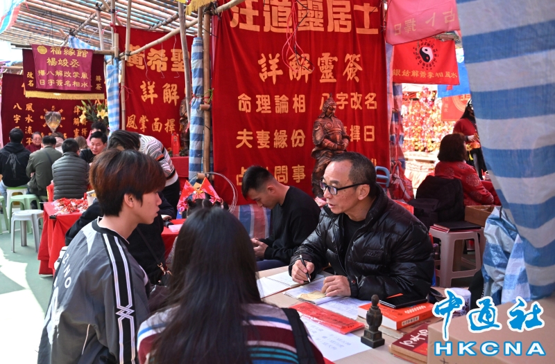 香港沙田車公廟是香港新界沙田區大圍一座廟宇,其中在現有廟宇建築物後舊廟為一座香港二級歷史建築,主祀車公。車公,是宋朝末年的一名忠臣,蒙古滅宋,宋帝昺逃到廣東,車公一直護駕到香港,途中病逝。故受到當地鄉民的紀念與奉祀。據華人廟宇委員會指,車公廟每年參拜人數達50萬人次。圖為車公廟左邊的走廊上,則有多個解簽相士攤檔。 香港中通社圖片