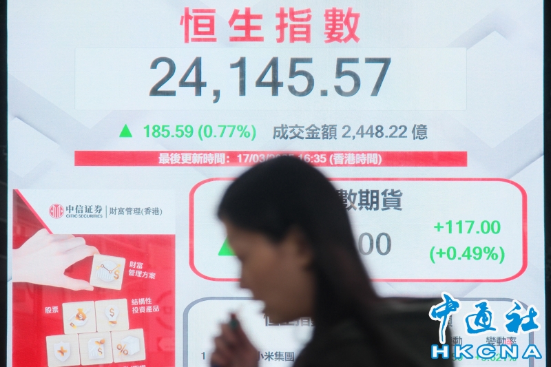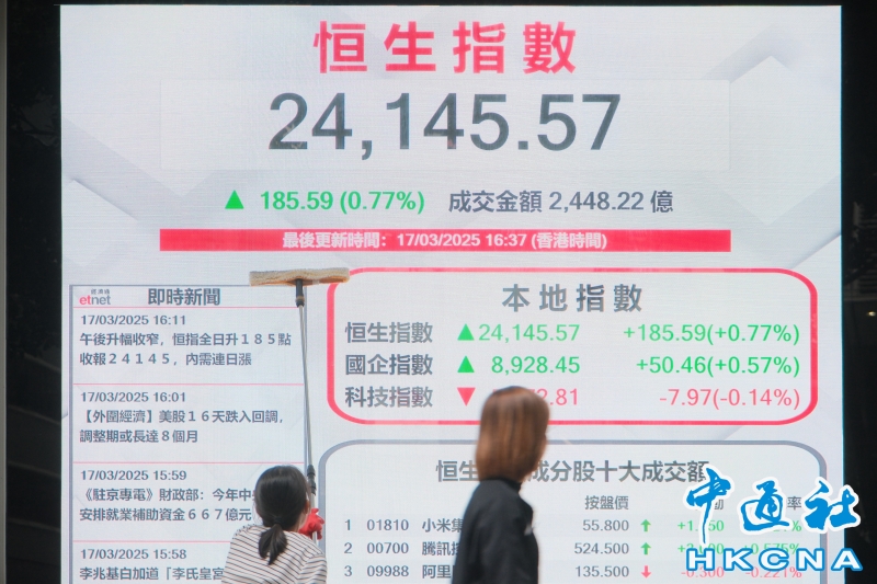 香港恒生指數漲185.59點 報24145.57點分享到: