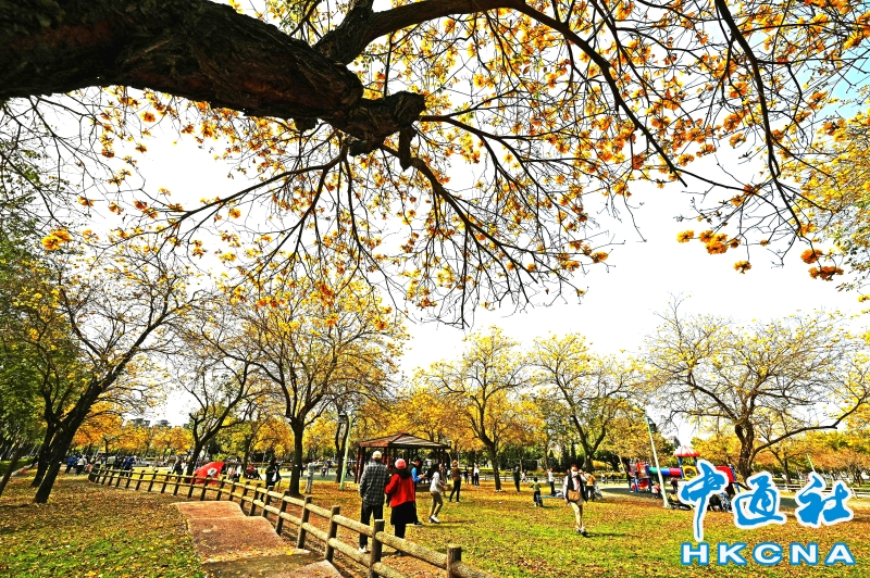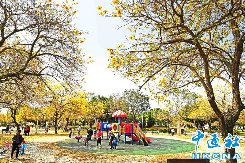台灣台中市廍子公園黃花風鈴木盛開分享到: