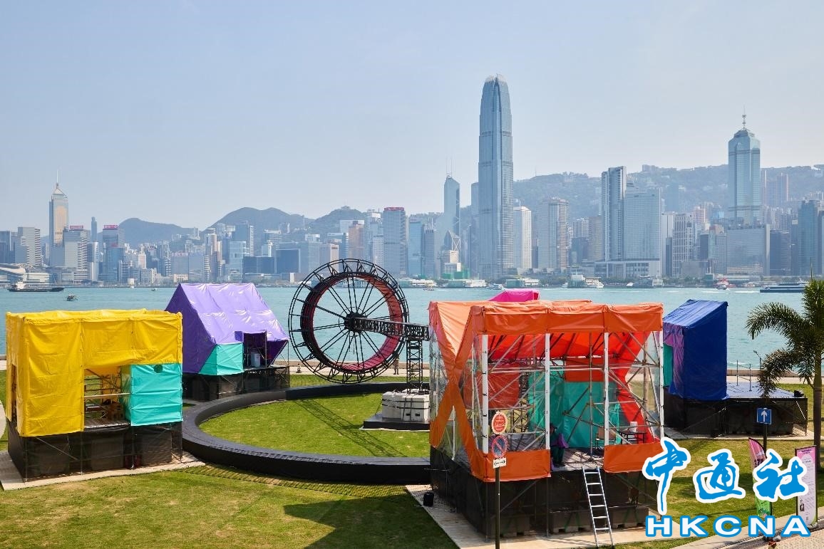 •   香港西九文化區在藝術公園正展出由美國藝術家Alex Schweder及Ward Shelley共同策劃的全新大型戶外藝術裝置《輪居》,并邀請香港本地藝術家進駐該藝術裝置交流和創作,探討環境對個人身份認同及社交聯繫的塑造。 香港中通社圖片