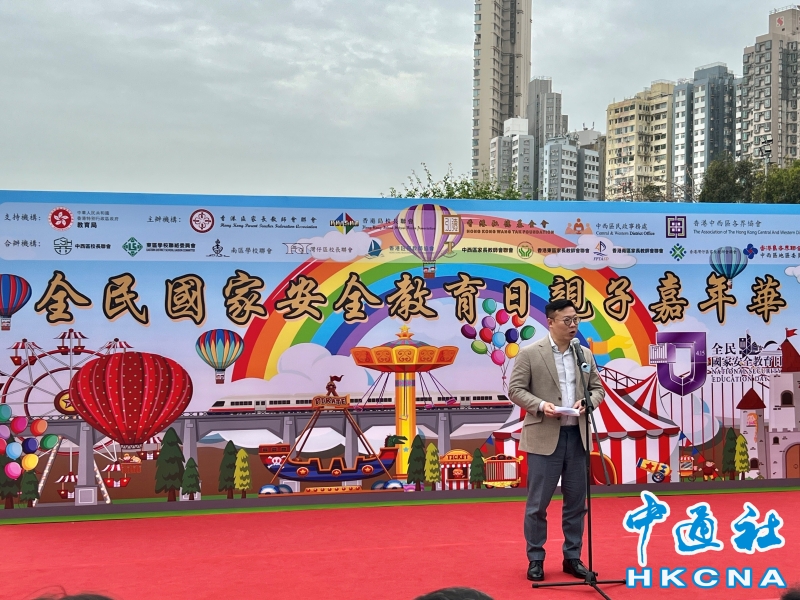 •   4月13日,香港特區律政司副司長張國鈞博士在香港島教育界“全民國家安全教育日親子嘉年華”致辭。 香港中通社圖片