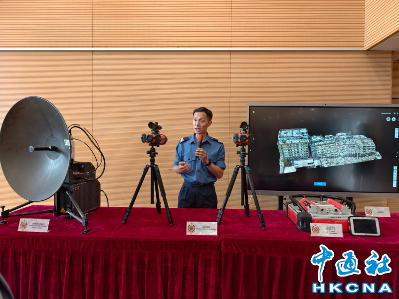 •     香港特區救援隊22日在香港消防及救護學院會見傳媒,分享在緬甸的地震救災行動。救援隊在空中採集影像,並通過電腦建模,形成三維模型。參與救援的消防處消防隊目梁志宏介紹,在無人機飛行30分鐘後,電腦只需要半小時即可完成建模。(香港中通社記者 梁嘉軒攝) 香港中通社圖片