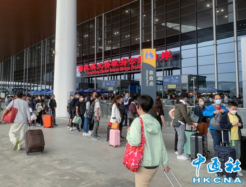 •   澳門特區政府治安警察局5月9日表示,繼橫琴口岸澳門口岸5月7日迎來本年度首個千萬級通關客流高峰後,港珠澳大橋澳門口岸也在5月9日凌晨3時突破一千萬出入境客流量。 (香港中通社記者 徐文峰攝) 香港中通社圖片