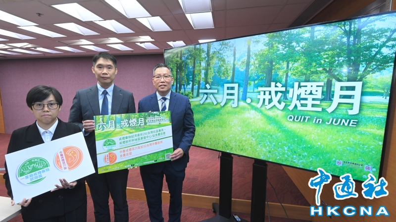 •   5月23日,香港特區政府衞生署公布“六月.戒煙月”一連串推廣活動,一方面響應五月三十一日的“世界無煙日”,同時鼓勵吸煙人士嘗試戒煙,以降低患上吸煙相關疾病和死亡的風險。 香港中通社圖片
