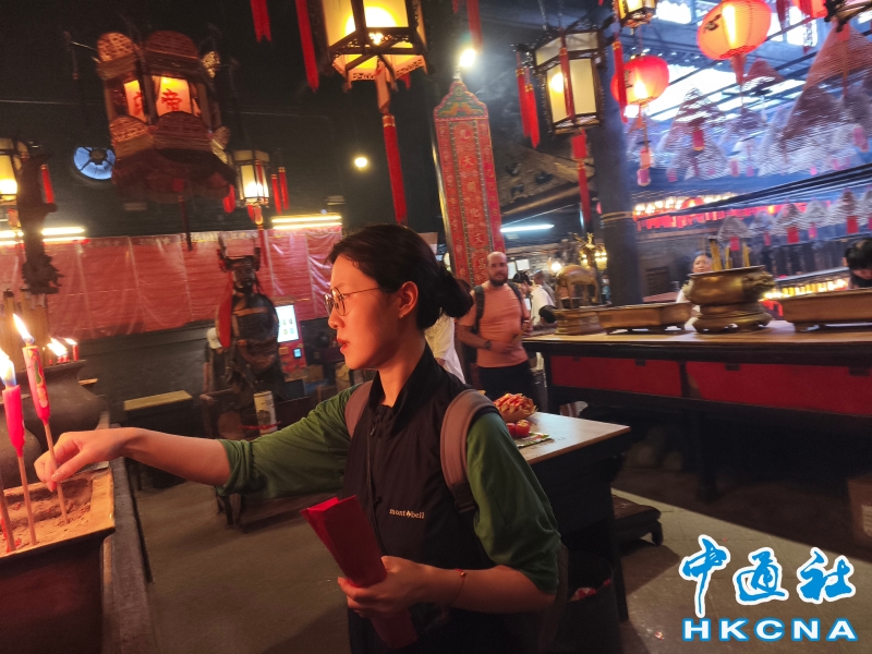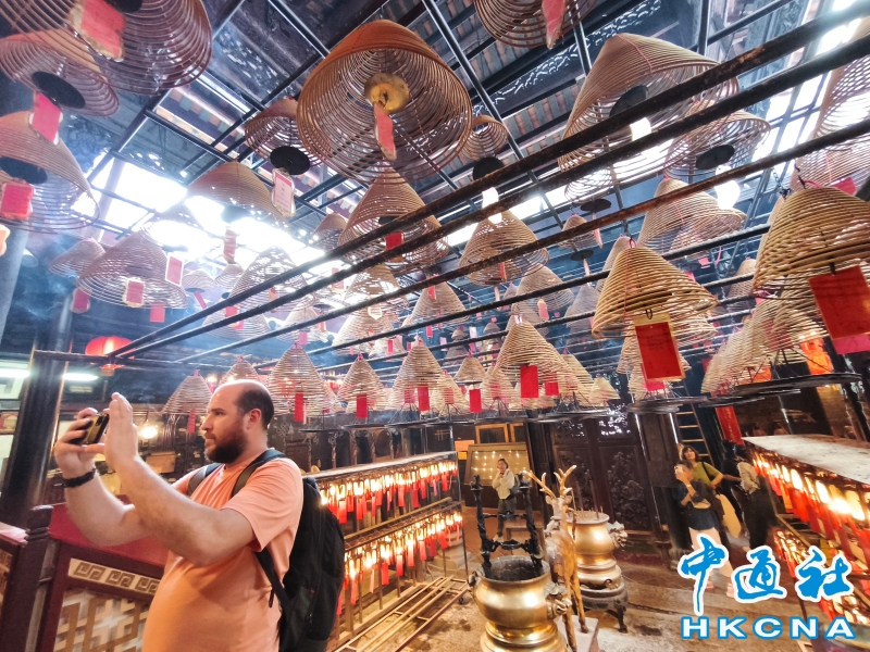 近日,香港發展旅遊熱點工作組公佈首階段旅遊熱點落實項目,公佈九個旅遊熱點項目,包括能回溯香港工業品牌變遷、中環citywalk(漫步)、生態遊,再闖入九龍城遊歷城寨風光,並擬開放旅客熱熾期望的“打卡”熱點。帶領工作組的政務司副司長卓永興形容項目共通點是均具香港特色、有新意或新體驗、值得“打卡”,遍布港九新界,體現香港無處不旅遊的特色。在中環漫步舊城,屋頂由綠瓦鋪成的文武廟是眾多訪港遊客參觀遊覽的地方,文武廟估計建於1847至1862年間,由文武廟、列聖宮和公所三幢建築組成。文武廟主要供奉文昌及武帝(關帝);列聖宮用作供奉諸神列聖;而公所則是當時華人議事及解決紛爭的地方。文武廟內還完好地保留了鑄於1847年的銅鐘,和造於1862年的官轎。古廟屋頂的花崗石柱、花崗石門框、木雕匾額和歷史悠久的壁畫,更是巧奪天工,盡顯精湛的傳統工藝和技術,活靈活現地展示中式建築的特色。善信來文武廟,有的祈求學業猛進、有的祈求事事順景。你可以準備元寶衣紙、一紮細香、三枝長壽香及香油錢,奉上香火誠心祈福。其他供品例如生菜寓意“生財”;圓形的橘子類水果則代表圓滿和順利。文武廟除了華人信仰拜祭外,近年吸引不少外國遊客來此感受傳統文化。(香港中通社記者洪少葵攝) 香港中通社圖片