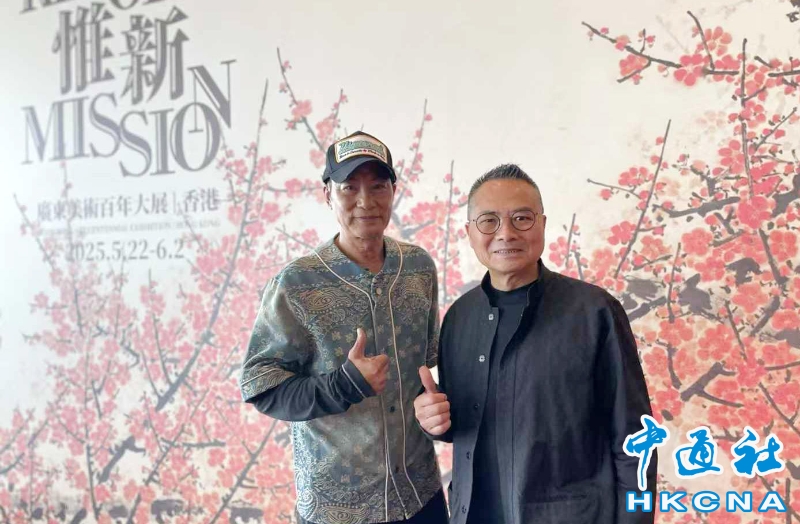 •   5月27日,著名影星任達華到香港會展中心欣賞“其命惟新——廣東美術百年大展”。圖為著名影星任達華(左)與香港美術家協會主席林天行。 香港中通社圖片