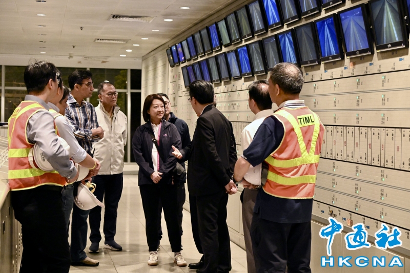 •   5月31日,香港特區政府零時零分接收大欖隧道,實施新收費和“易通行”。運輸署署長李頌恩凌晨視察大欖隧道行政大樓,確保接管工作安全順暢。圖為李頌恩(右四)聽取營辦商匯報隧道全線封閉期間進行的轉換工程。 香港中通社圖片