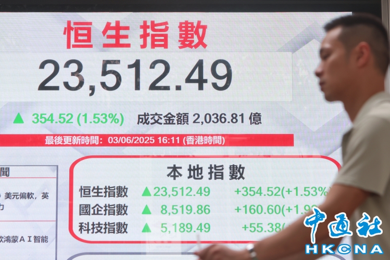 香港恒生指數漲354.52點 報23512.49點分享到: