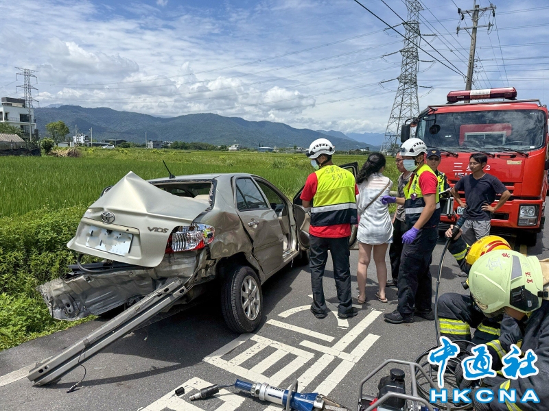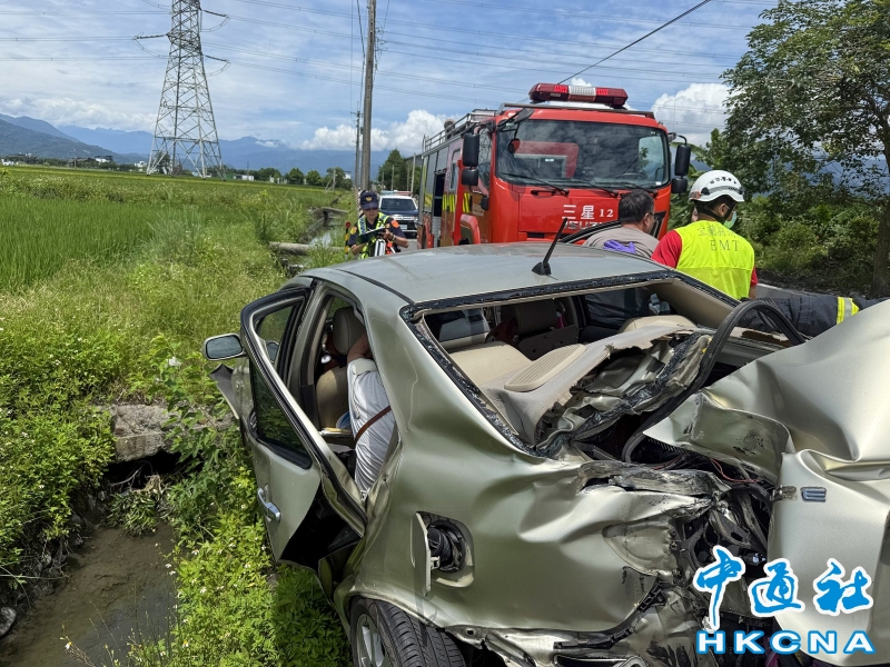 台灣宜蘭鄉間小路兩車交叉撞 轎車被撞爛險掉田里分享到: