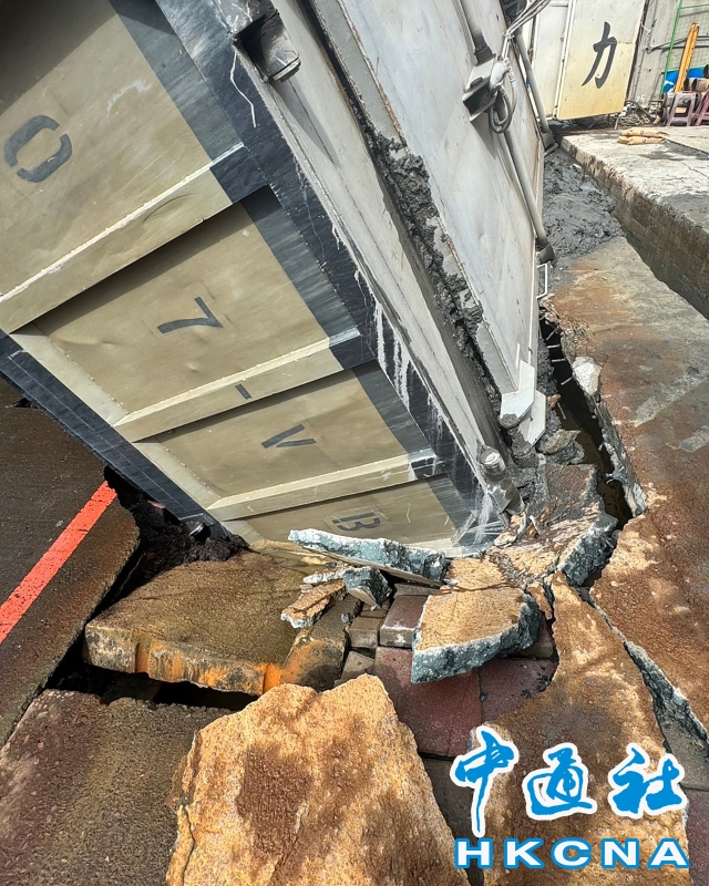 台灣新北路面塌陷 砂石車掉坑分享到: