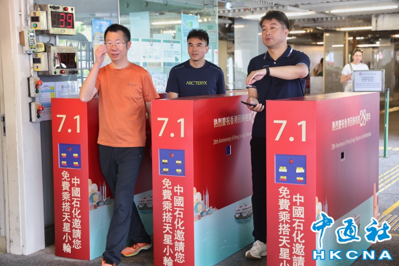 •   7月1日,為慶祝香港回歸祖國28周年,香港市民和遊客可免費搭乘天星小輪的“尖沙咀-灣仔”航線。(香港中通社記者  謝光磊 攝) 香港中通社圖片