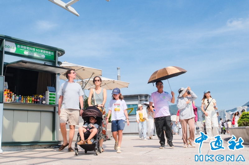 7月17日,香港天氣持續酷熱。圖為市民在烈日下出行。(香港中通社記者 許其皓攝) 香港中通社圖片